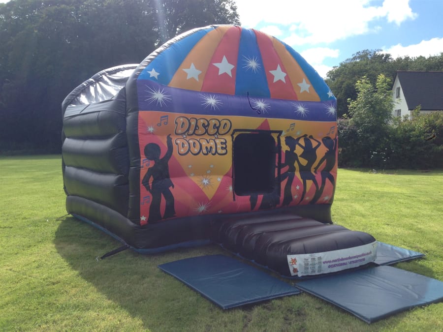 The disco dome bouncy castle is great for something a little different. It has a Bluetooth speaker and light unit inside that you connect to allowing you to play you own music. WIth the lights beating in time to the music it's like having your very own disco.