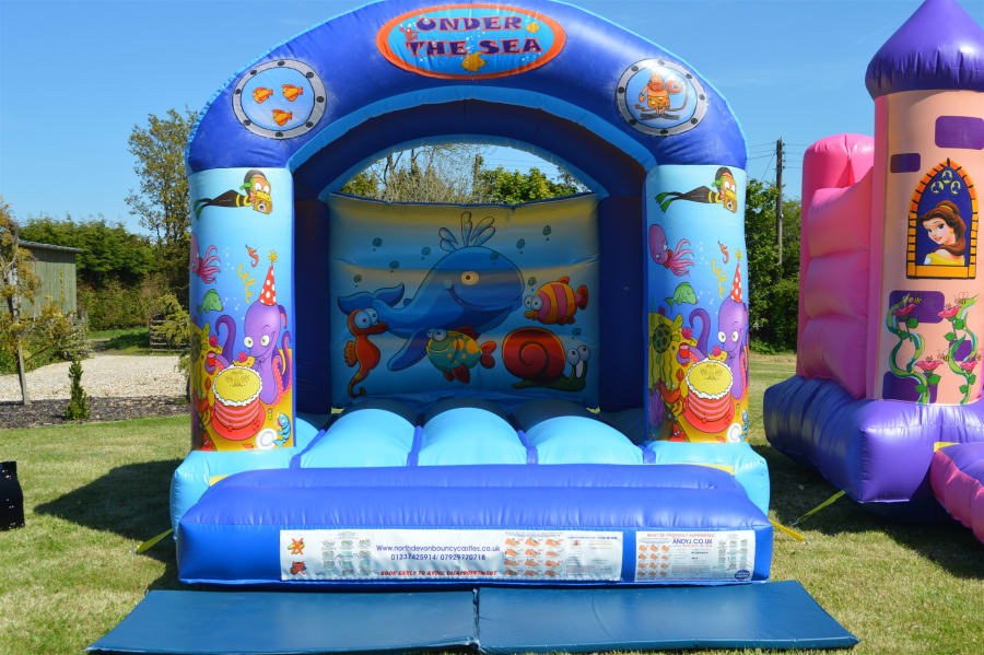 Kids love this sea themed 10x12 bouncy castle, and with a fitted raincover it won't let the British weather spoil your special day. Ideal for a village hall or the garden.