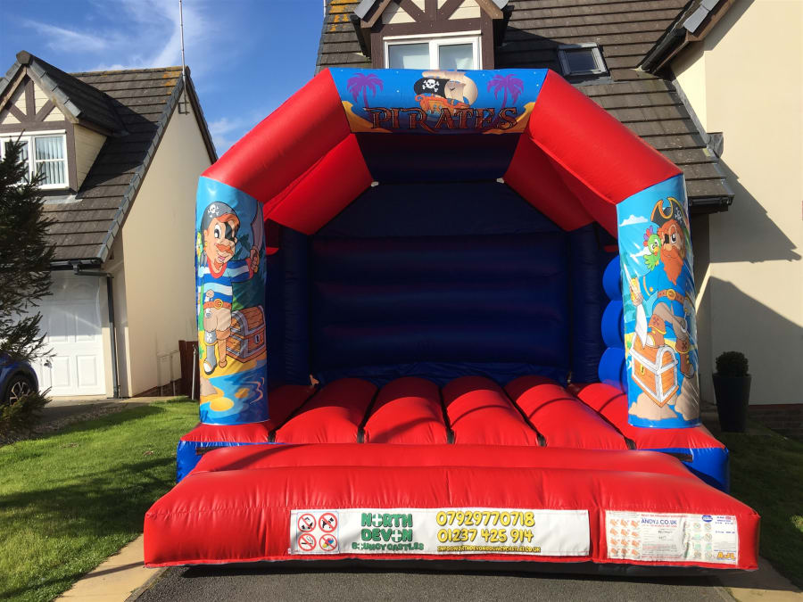 Here we have our 12x12 Pirate themed bouncy castle. Great if the kids are having a pirate themed party or if they are just a budding Jack Sparrow.. Arrrrr!....Break out the eye patches!